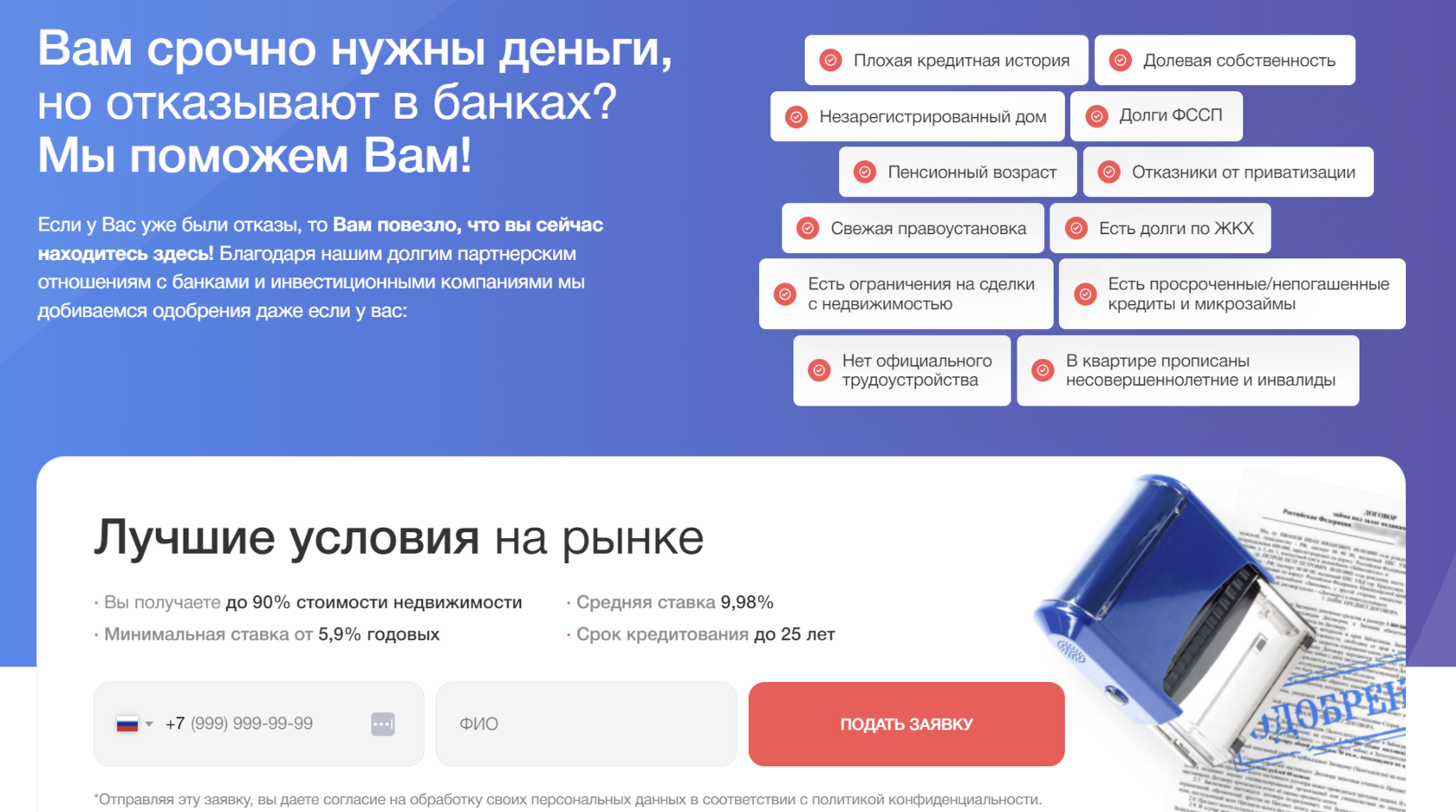 Кредитная история не учитывается, Одобрение без справок и с ФССП